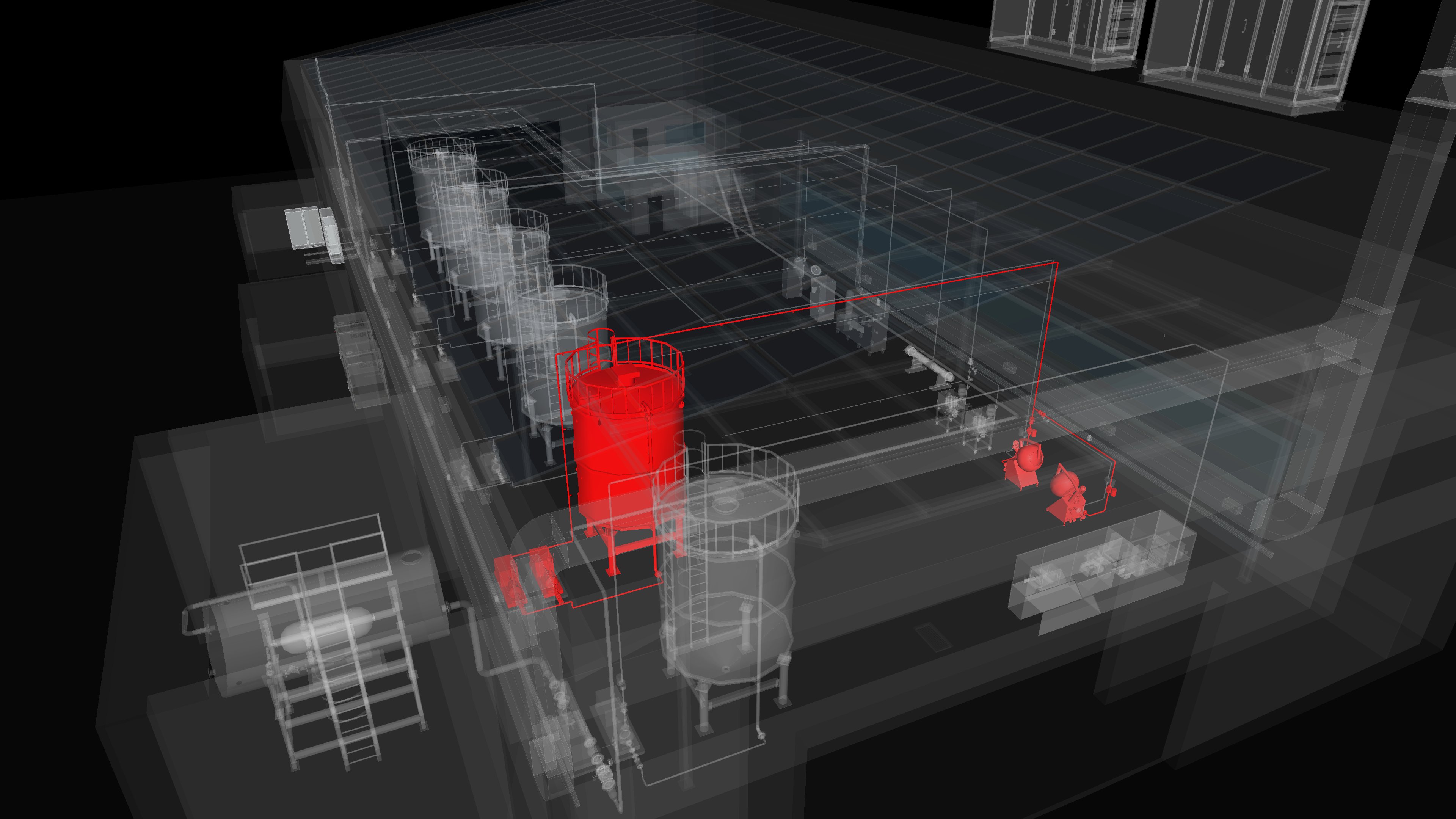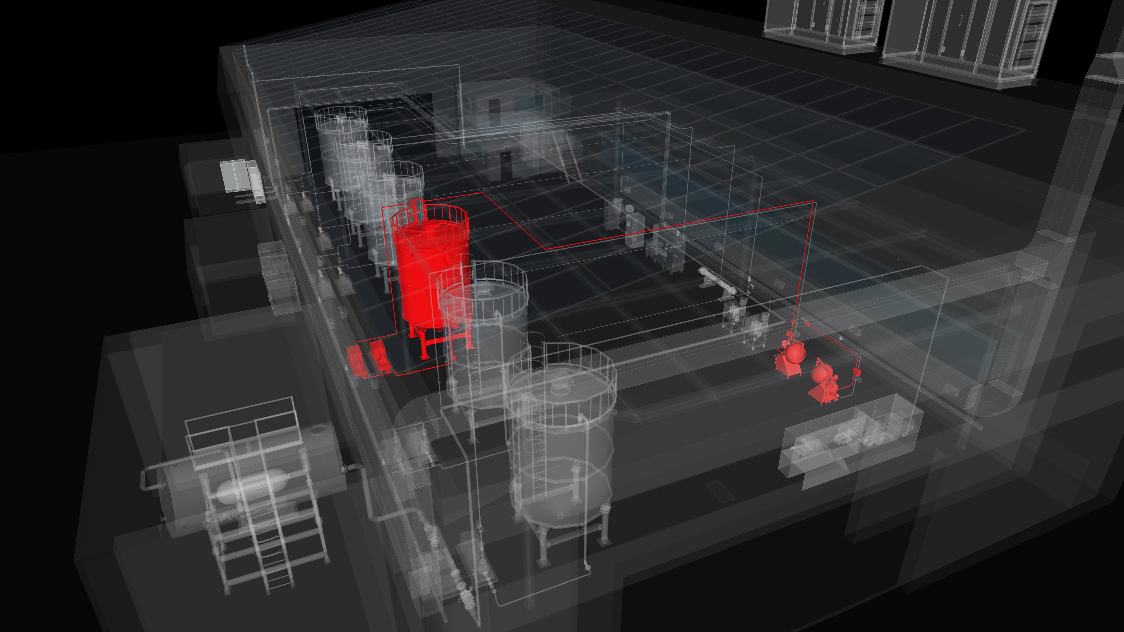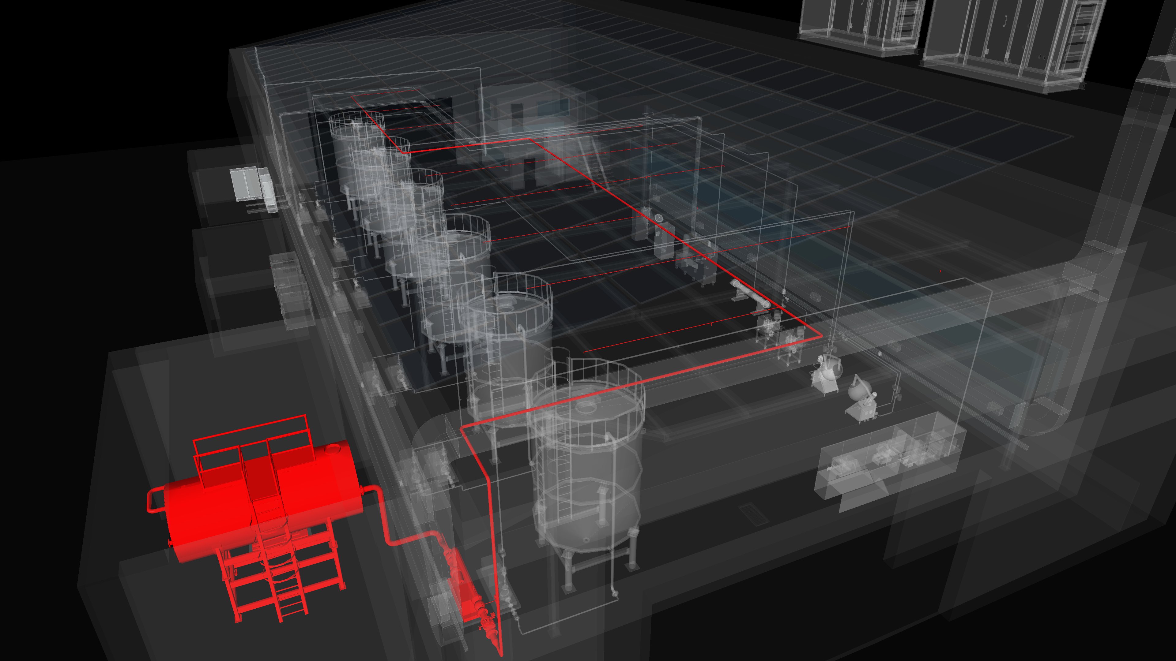 3D - Detailed view of equipment and piping